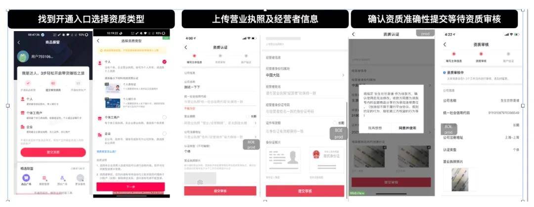 以上是抖音个人号的开通橱窗带货流程,如果是企业号(蓝V)开通商品橱窗则需要准备营业执照、法人银行卡(对公账户)、法人身份证正反面,开通流程大同小异。