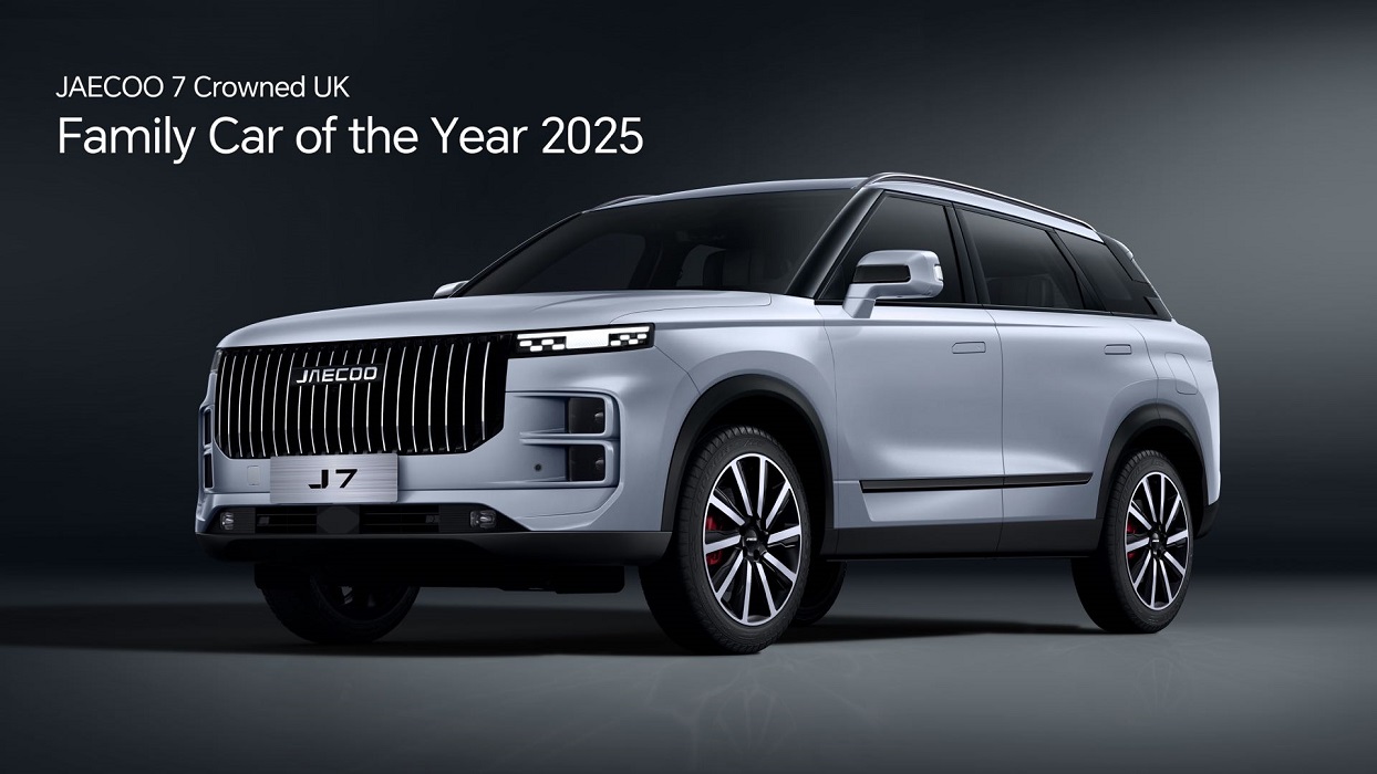 图为JAECOO 7荣获英国2025年度家庭轿车